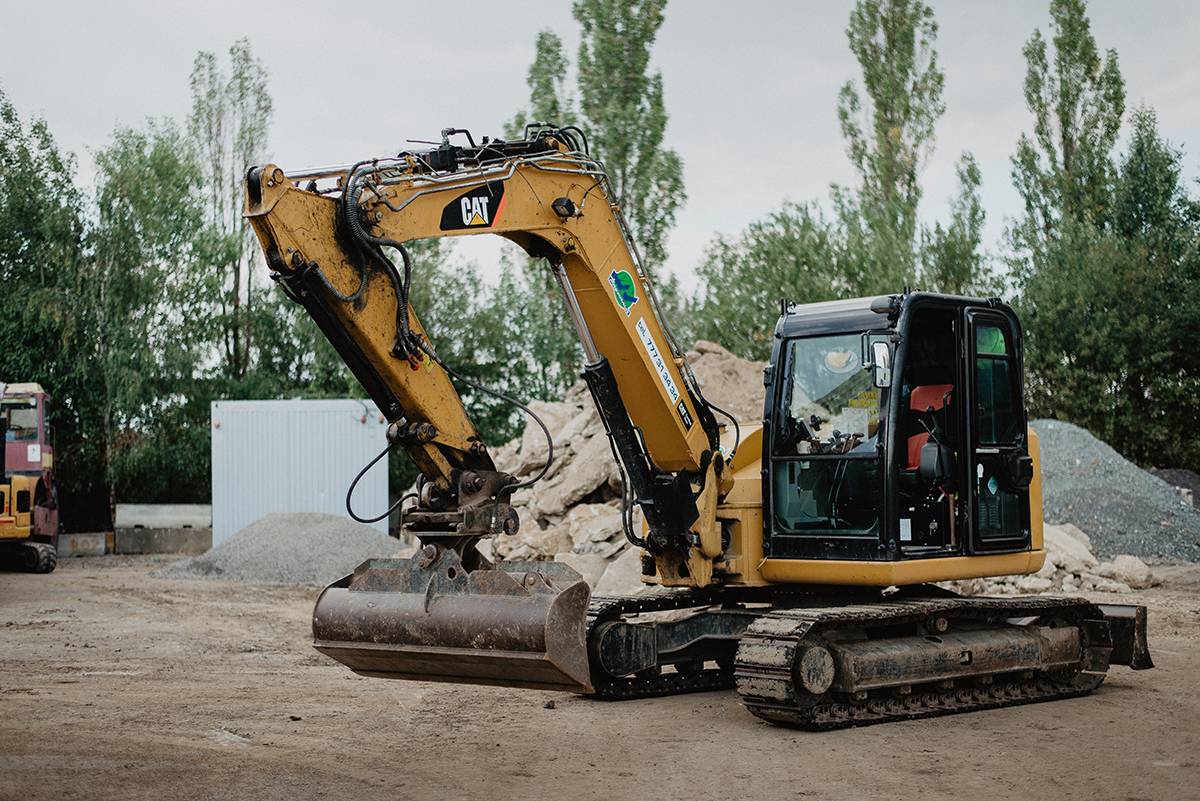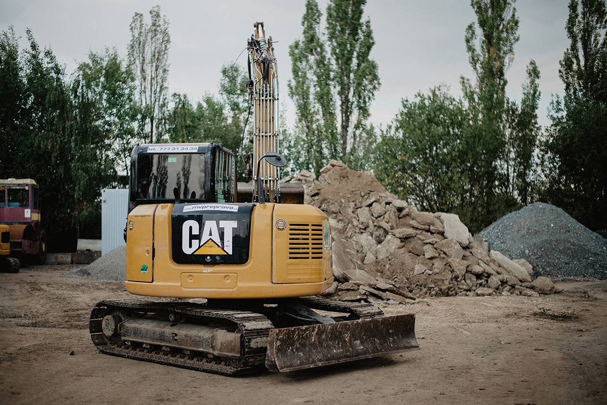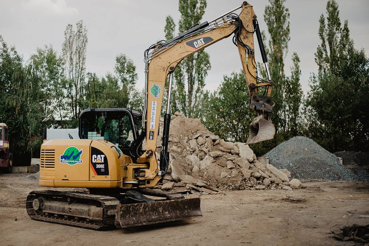 Výkonné rypadlo CAT 308E je vhodné pro rozsáhlé výkopové práce. Jeho předností je hloubkový dosah přes 5 m a šířka výkopu až 90 cm. Součástí příslušenství je demoliční kladivo.